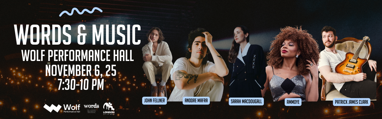The London Music Office and the Words Festival are pleased to host "Words & Music," a celebration of Canada's first UNESCO City of Music, featuring live performances by London artists Sarah MacDougall, Anddre Mafra, Patrick James Clark, and John Fellner, as well as Ammoye!